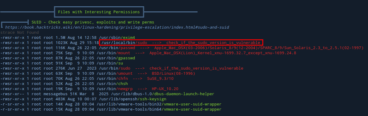 Sudoers audit plugin version 1.9.17Wersja sudo to 1.9.17, a ta podatna jest na CVE-2025-32462.